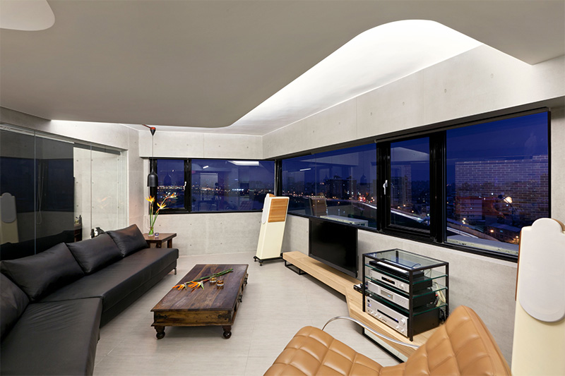 以仿清水模注入類原生的概念,融合得天獨厚的絕佳景觀並額外增添木質元素,讓我們在清水模的沈著冷調中,帶點暖,造就出裡外環境的美好結合。