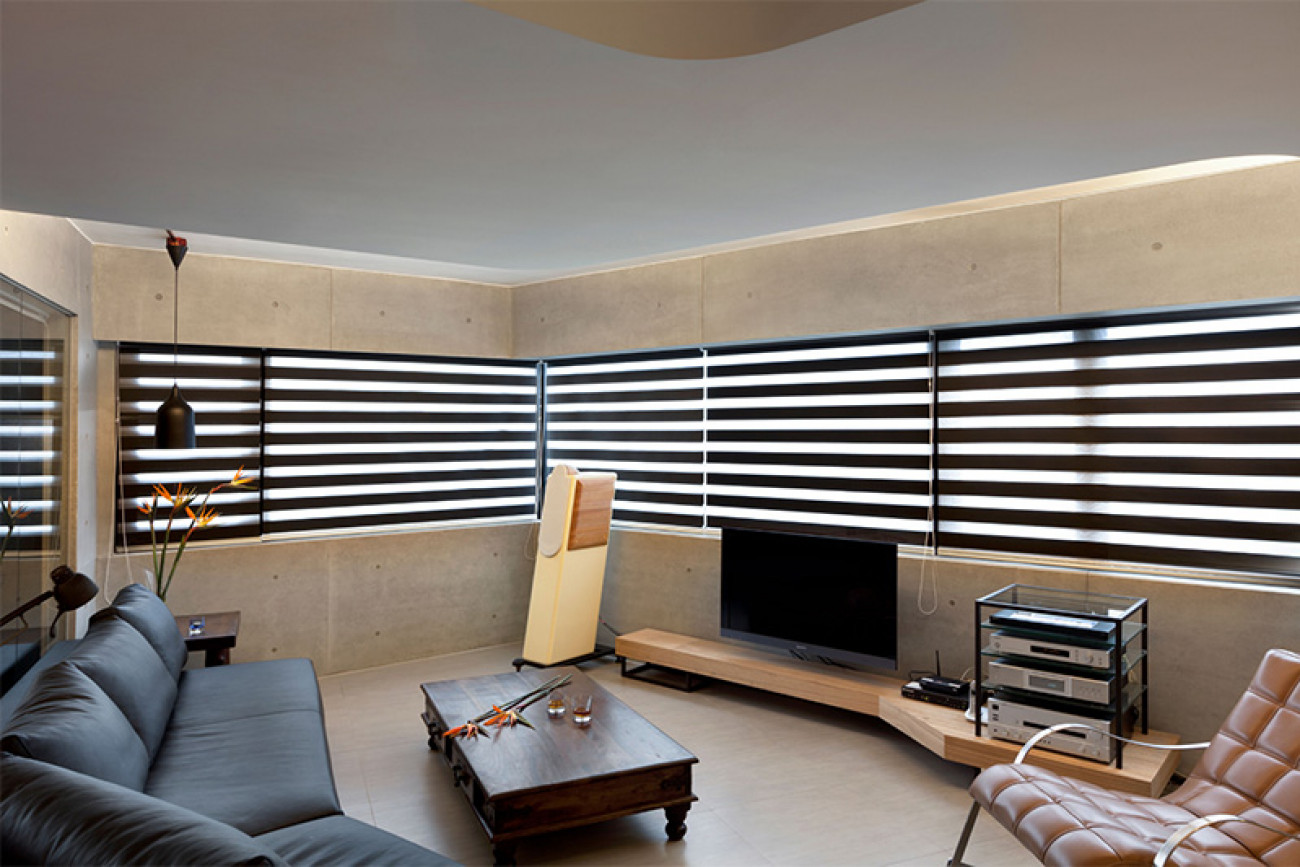 採用雙色簾來遮光,巧妙玩出光的品味。跟隨當下的心境調整光的明暗,全罩或半罩,盡其在我。